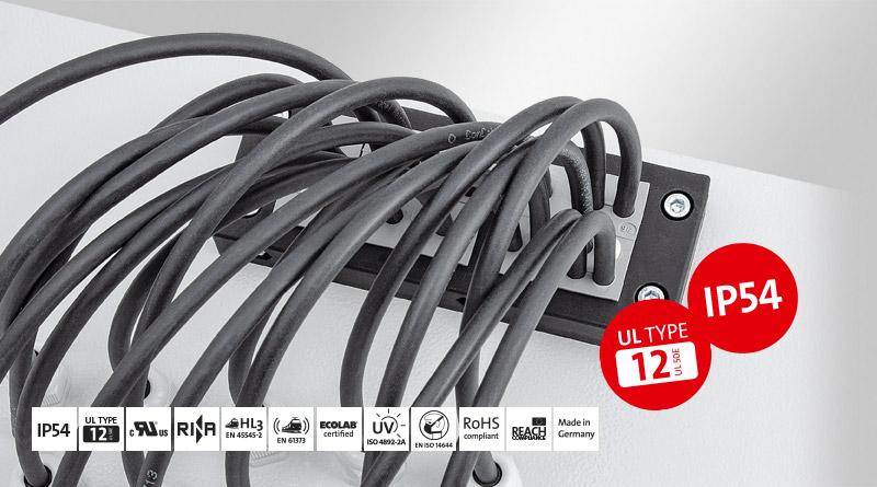 設計緊密的 電纜引入底板KEL-DPU, KEL-DPZ 和KEL-DP可以憑借最小的空間占用率來安裝直徑為1.5-22mm的無連接器的標準電纜。電纜密封防護等級最高可以達到 IP68 / UL type 4X* 。